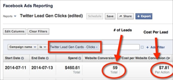 After a few days, the first campaign generated 59 leads at $7.81 cost each. Not bad!