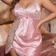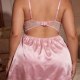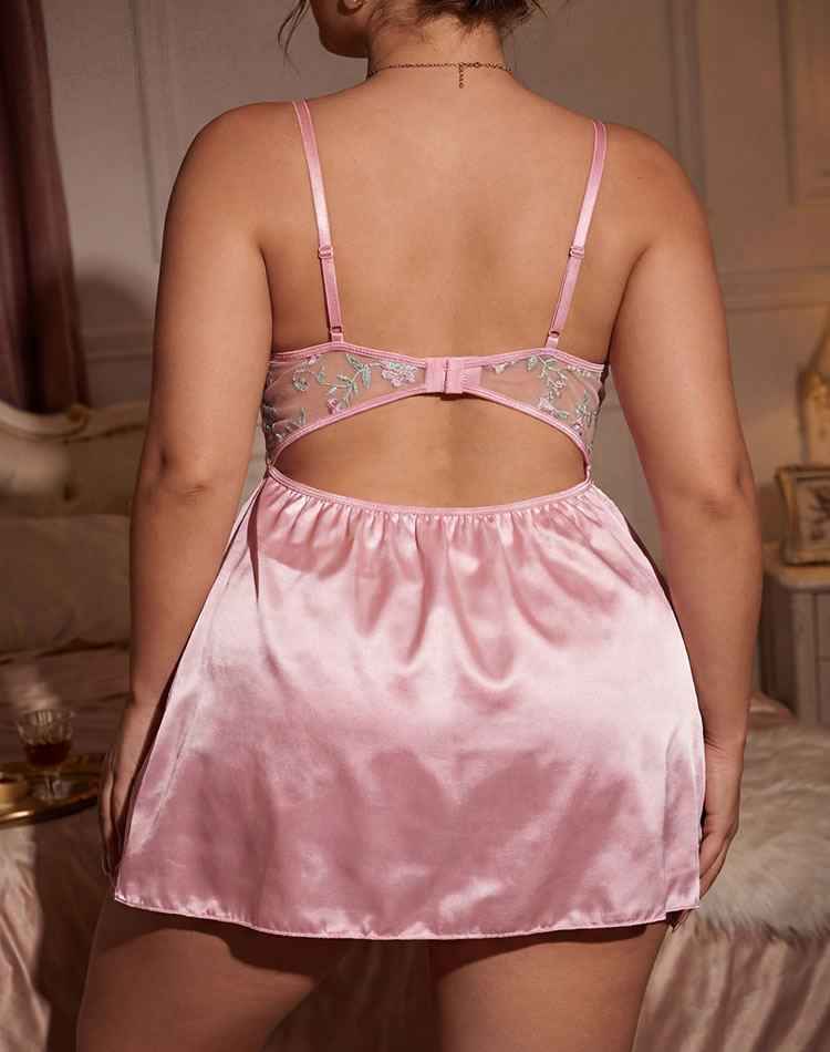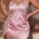 `Plus Size Pink Satin Lingerie Dress with Floral Embroidery