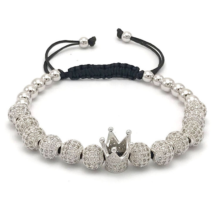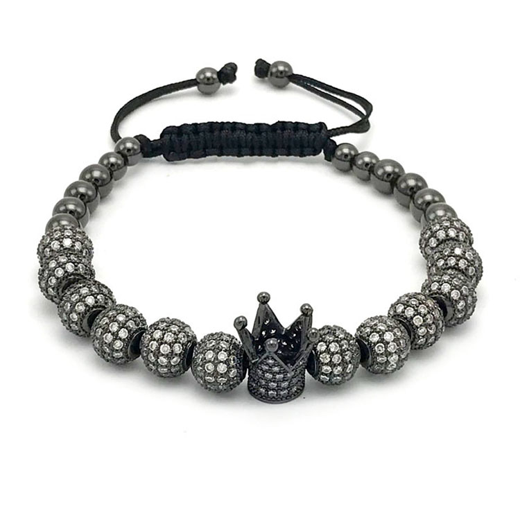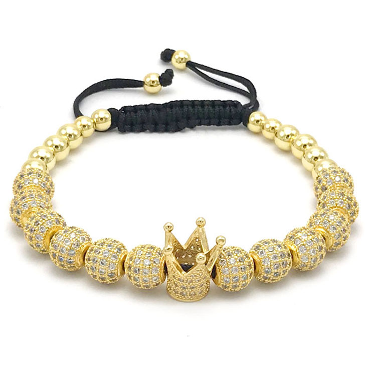 1pcs New Design Women's Fashion CZ Imperial Crown Bracelet with 6mm Gold-color Micro Pave CZ Women Braiding Macrame Bracelet