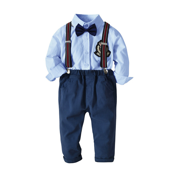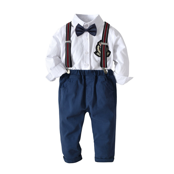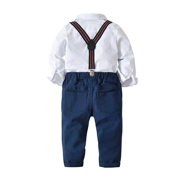 • 2 pieces outfit: Long sleeves button down dress shirt with bowtie + Matching Suspender pants