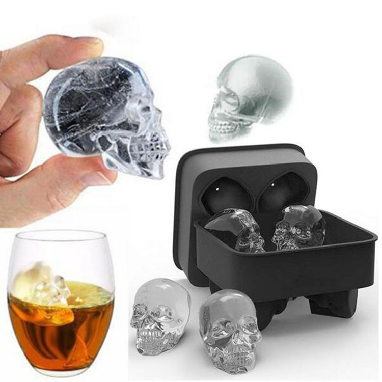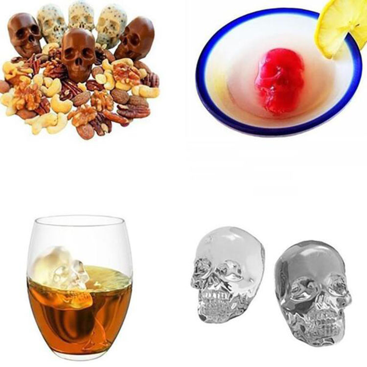 Skull Shape 3D Ice Cube Mold Maker Bar Party Silicone Trays Chocolate Mould Gift