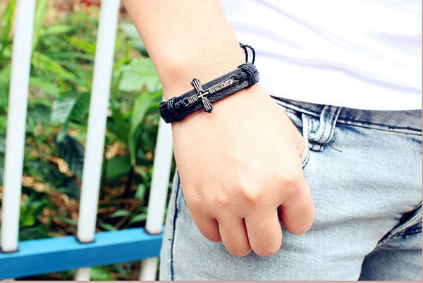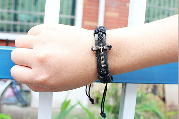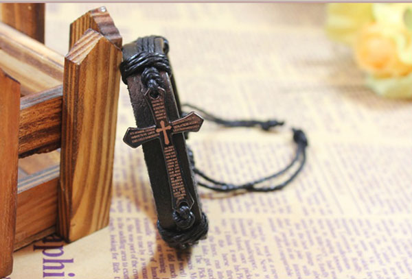 Alloy Bible Cross Pattern PU Leather Bracelet