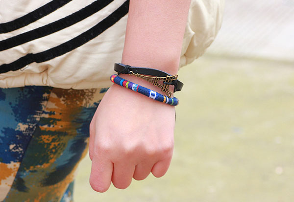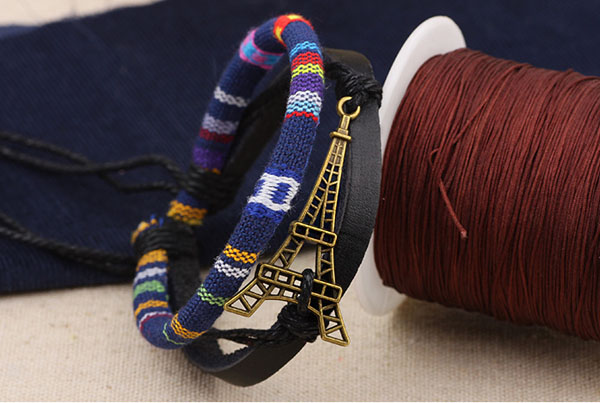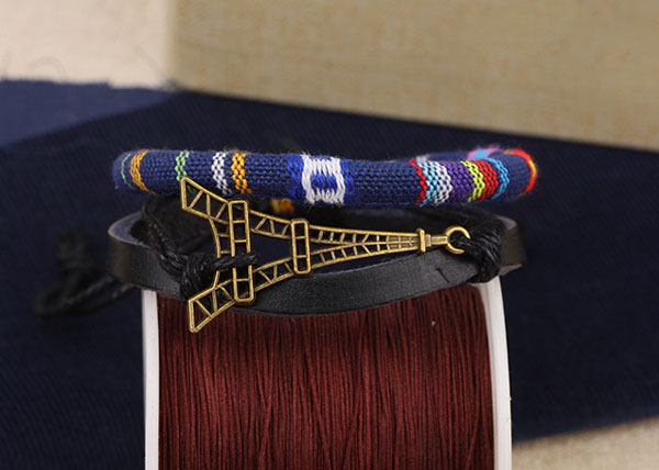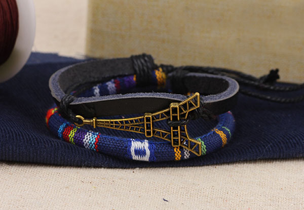 Alloy Eiffel Tower Rope PU Leather Bracelet