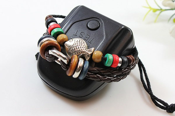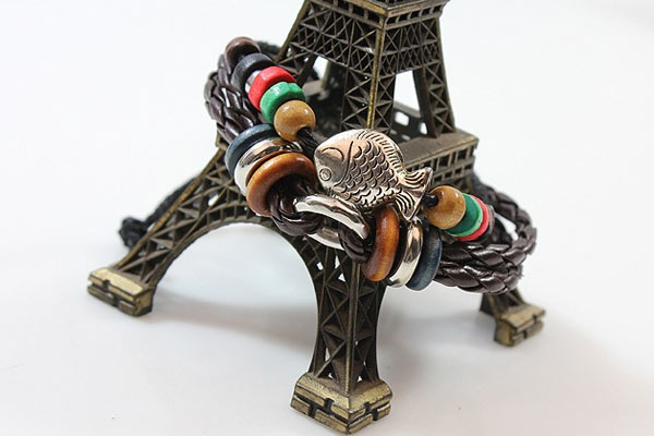 Alloy Fish Pattern Braided Rope PU Leather Bracelet