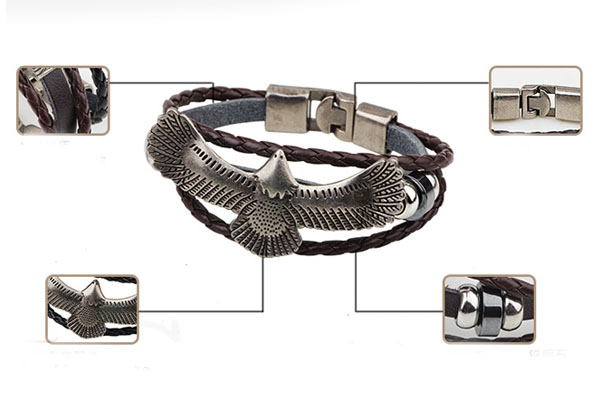 Alloy Hawk Pattern Braided Rings PU Leather Bracelet