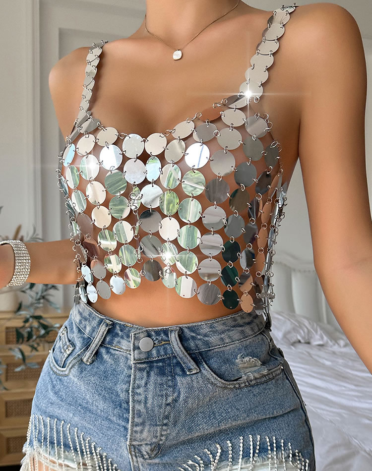 Always Dancing Sequin Cropped Top