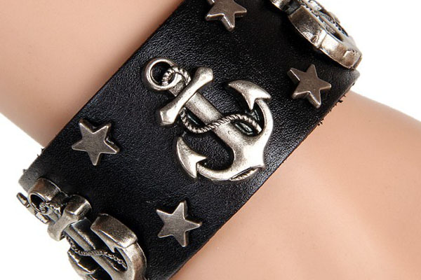 Anchor & Stars Snap Button PU Leather Bracelet