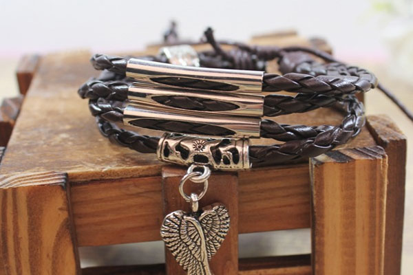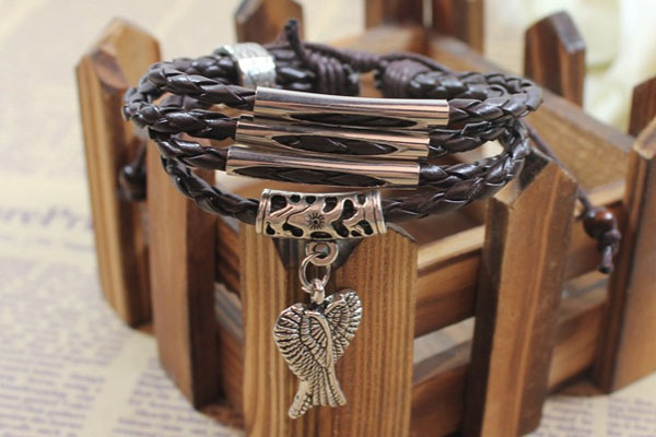 Angel Wings Alloy Pendant Rope PU Leather Bracelet