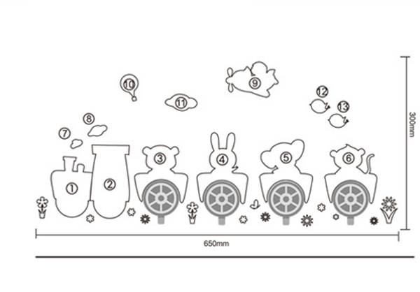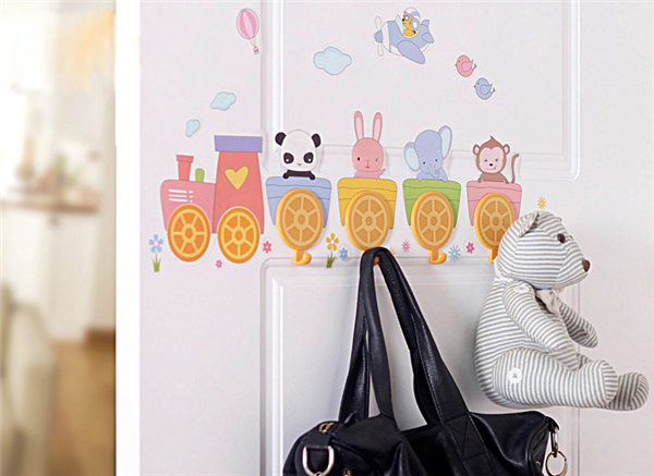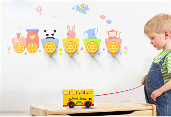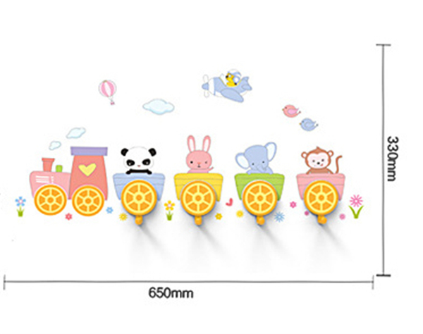 Animals Train Removablae PVC Wall Sticker With 4 Hooks