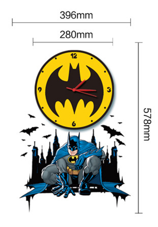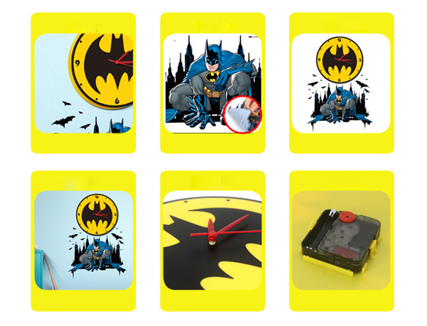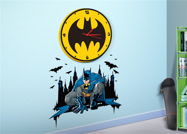 Batman Removable Wall Paper Stickers 3D Kid's Room Clock