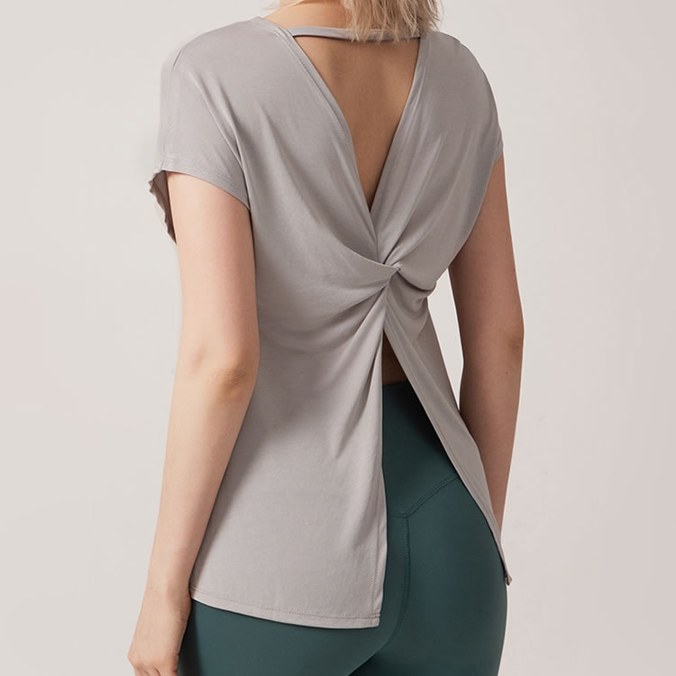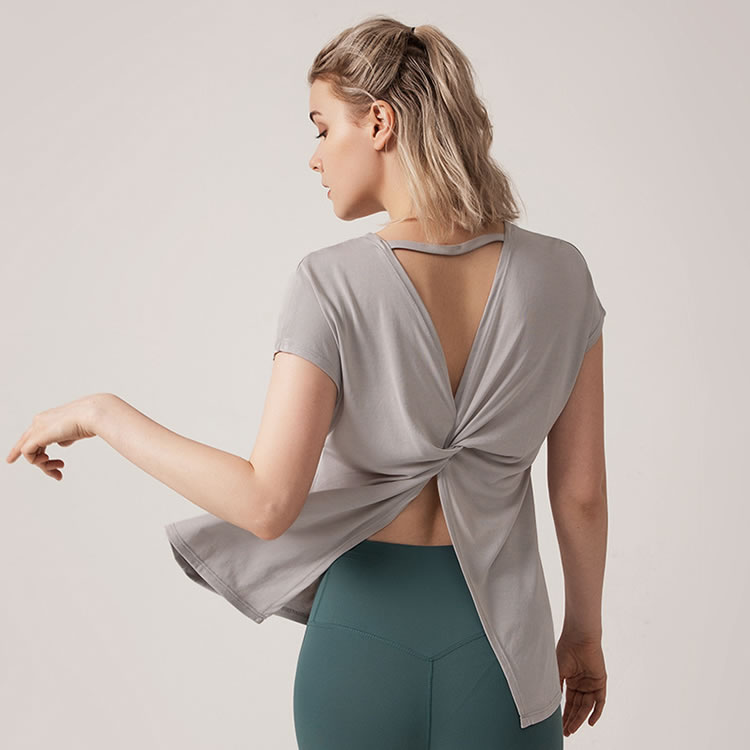 Backless Yoga Shirts Womens Sexy Open Back Workout Tops Solid Color Short Sleeve Quick Dry Sweatshirt