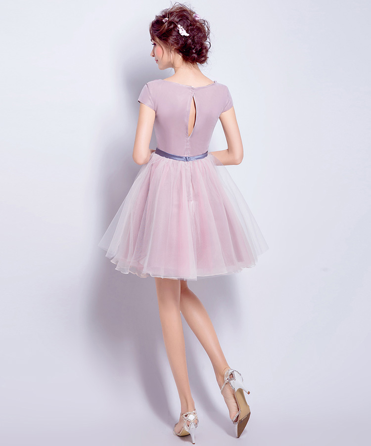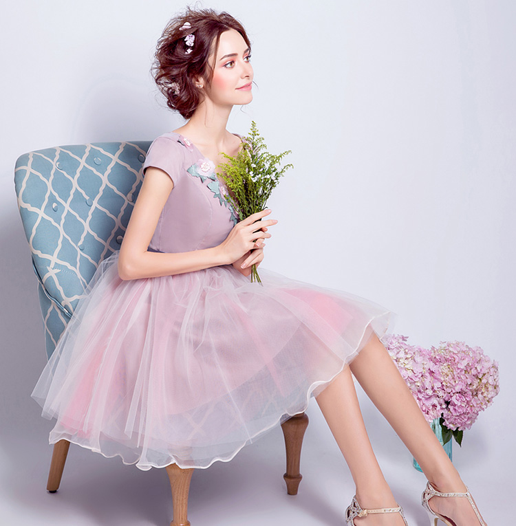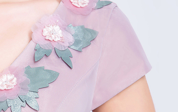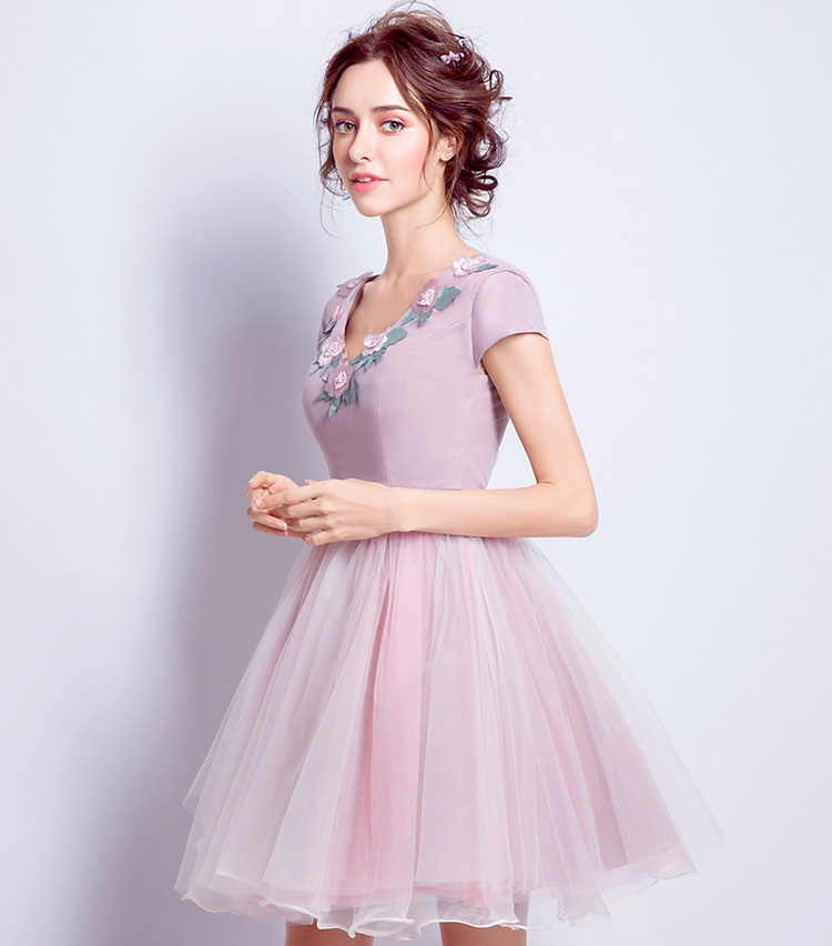 Beautiful Flower V-Neck Short Sleeve Homecoming Dress