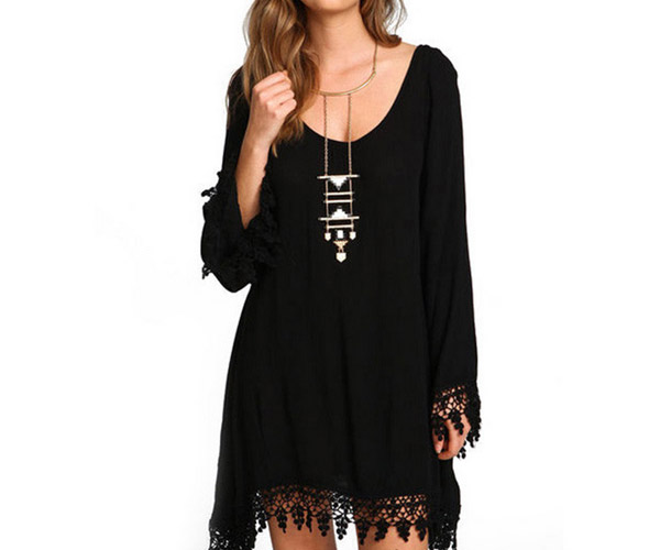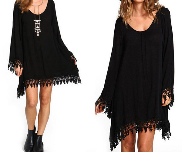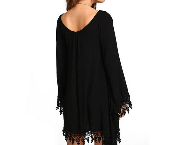 Crochet Lace Trim. This Cute And Comfortable Knit Dress Features Long Sleeves