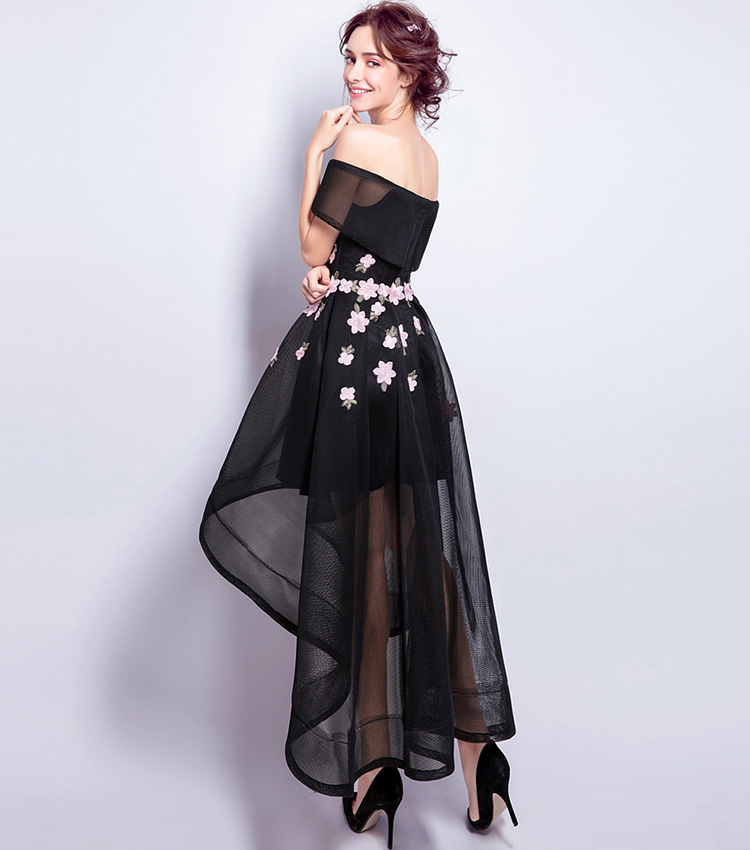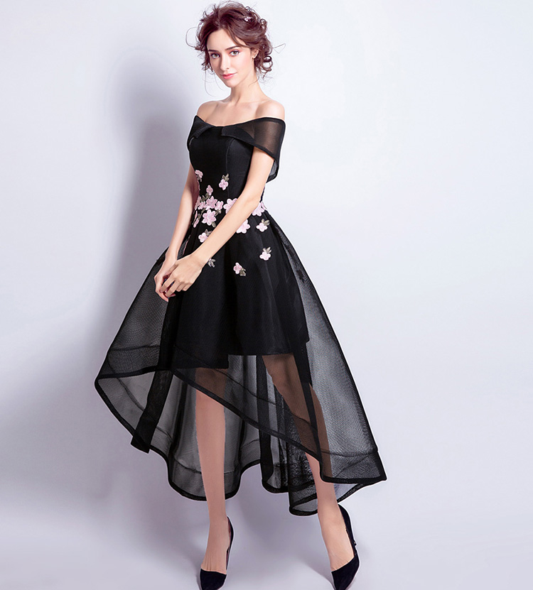 Black Front Short Back Long Boat Neck Cocktail Dress