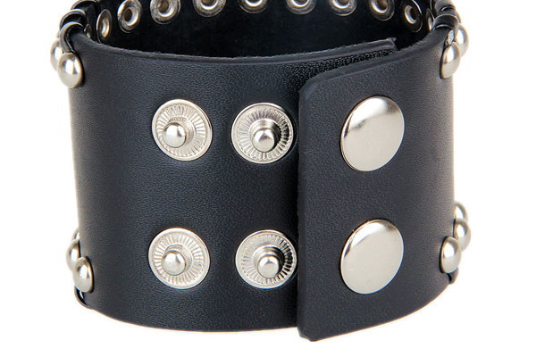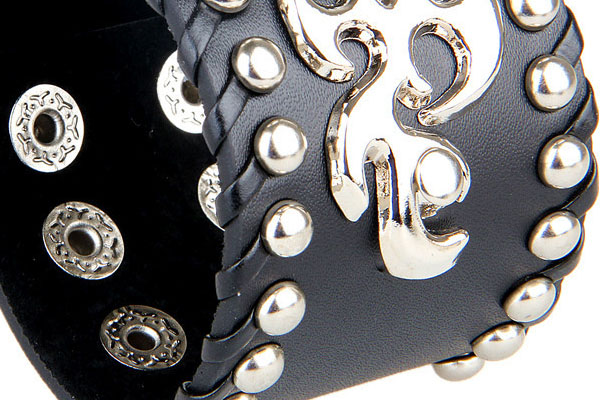 Black Metal Flame & Round Rivets PU Leather Bracelet