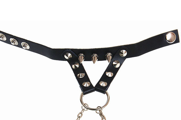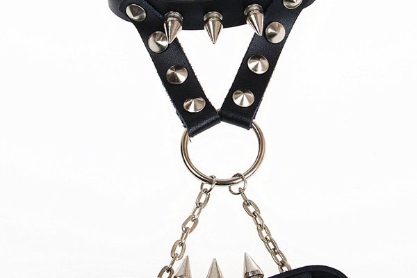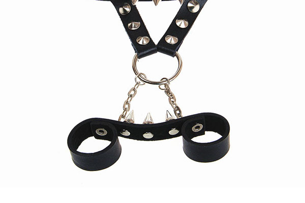 Black Punk Share Alloy Rivets PU Leather Bracelet With Chains