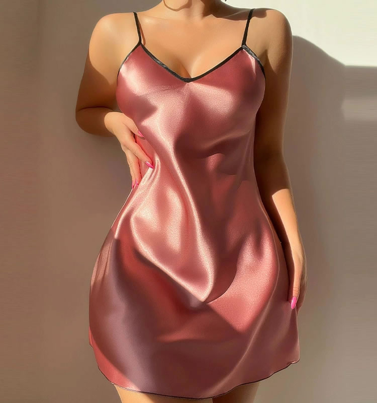 This sleek black satin chemise is a must-have for anyone who appreciates timeless elegance. The smooth fabric feels incredibly soft against the skin, while the classic V-neckline and thin straps create a flattering silhouette. Perfect for adding a touch of sophistication to your nightwear collection, this chemise combines comfort with chic design.