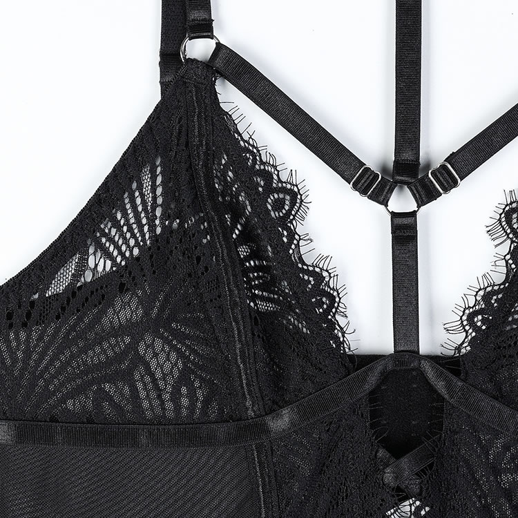 This bold black sheer bodysuit features intricate lace detailing that accentuates your curves and adds a touch of allure. The combination of soft mesh and soft cups creates a captivating silhouette, while the adjustable straps ensure both comfort and style. Perfect for those who want to feel confident and alluring in their intimate moments.