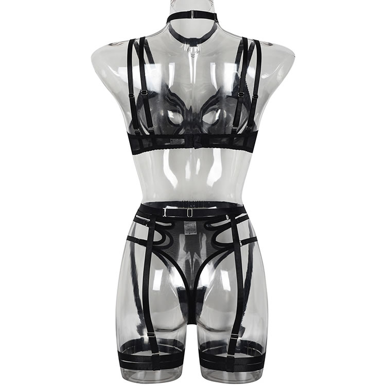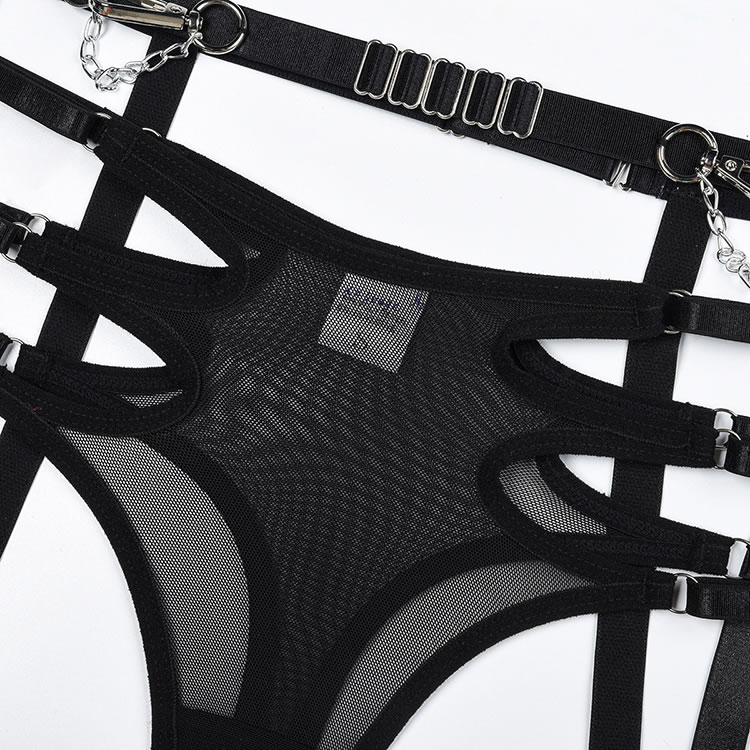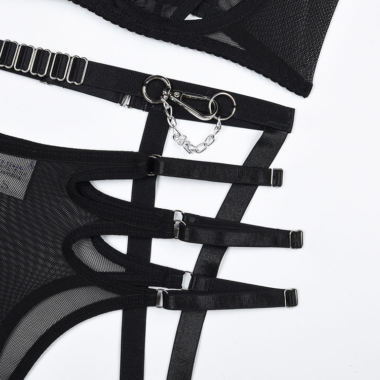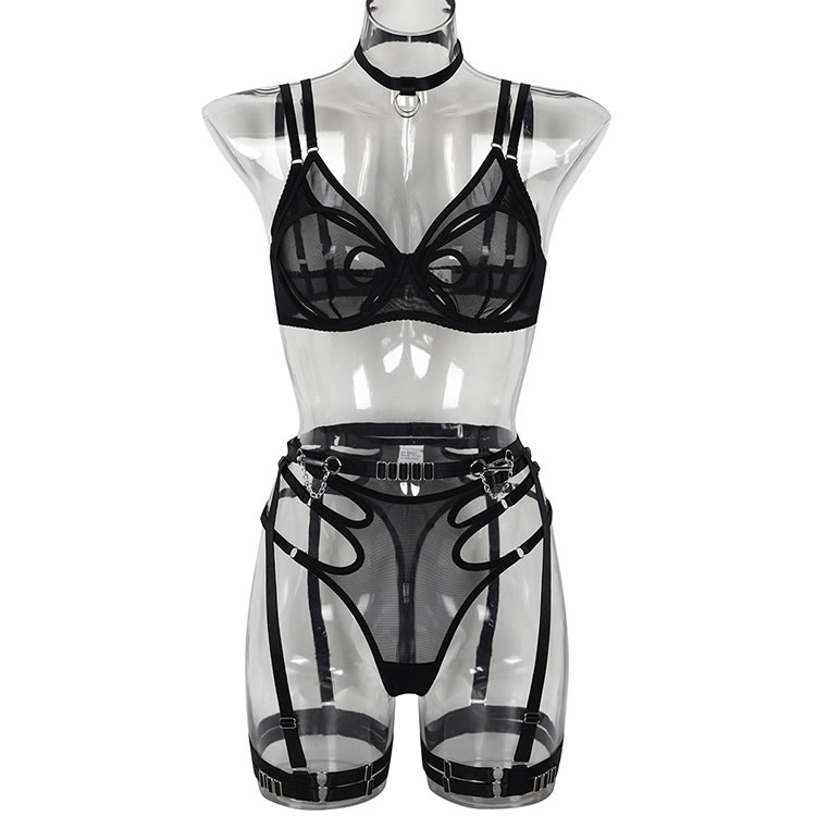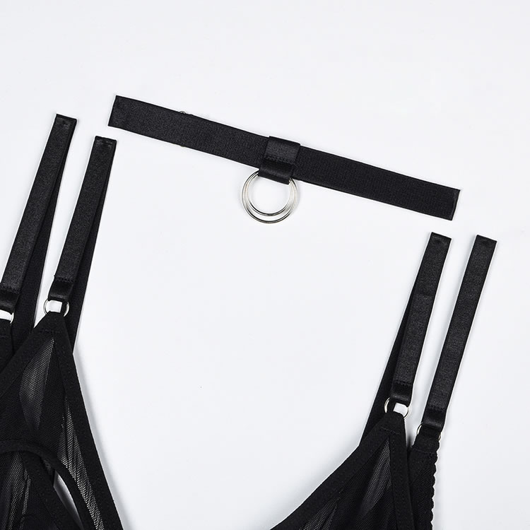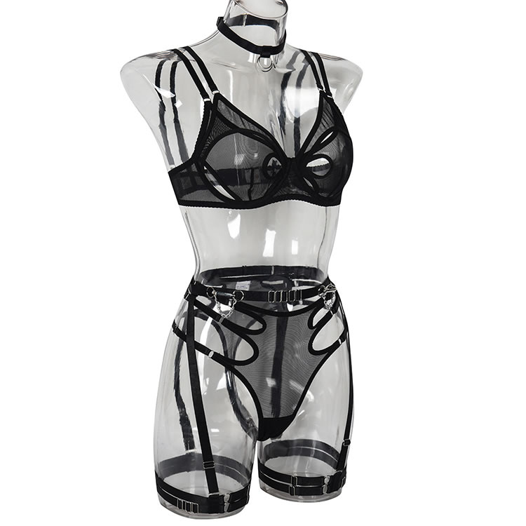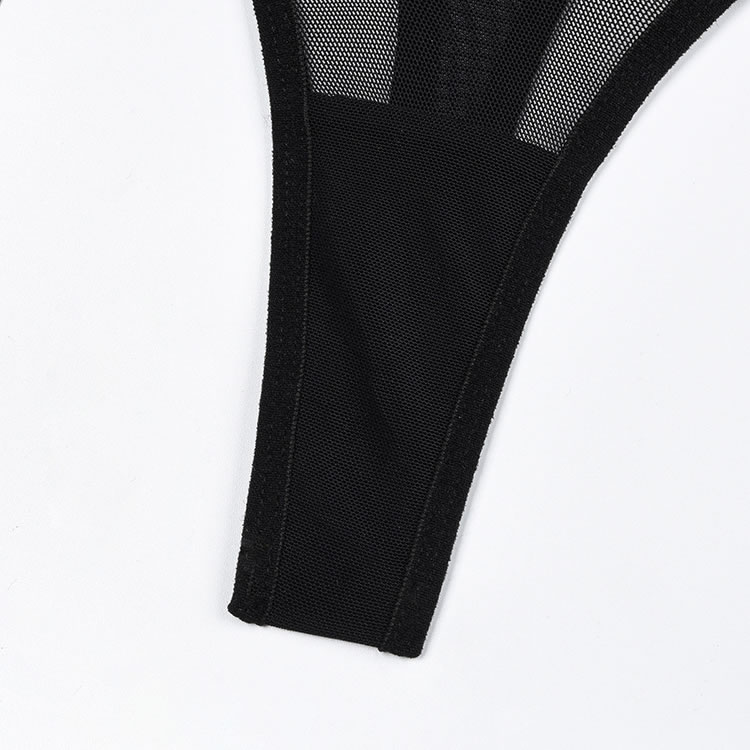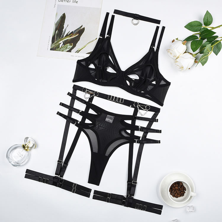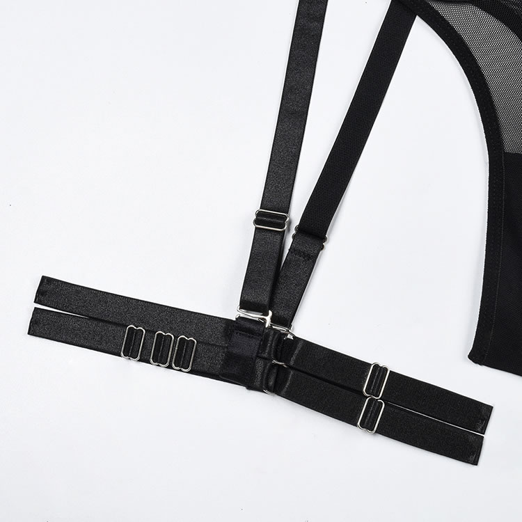 This bold black sheer lingerie set features eye-catching cut-out details that accentuate your curves and add a touch of edginess. The combination of soft mesh and supportive cups creates a captivating silhouette, while the adjustable straps ensure both comfort and style. Perfect for those who want to feel confident and alluring in their intimate moments.