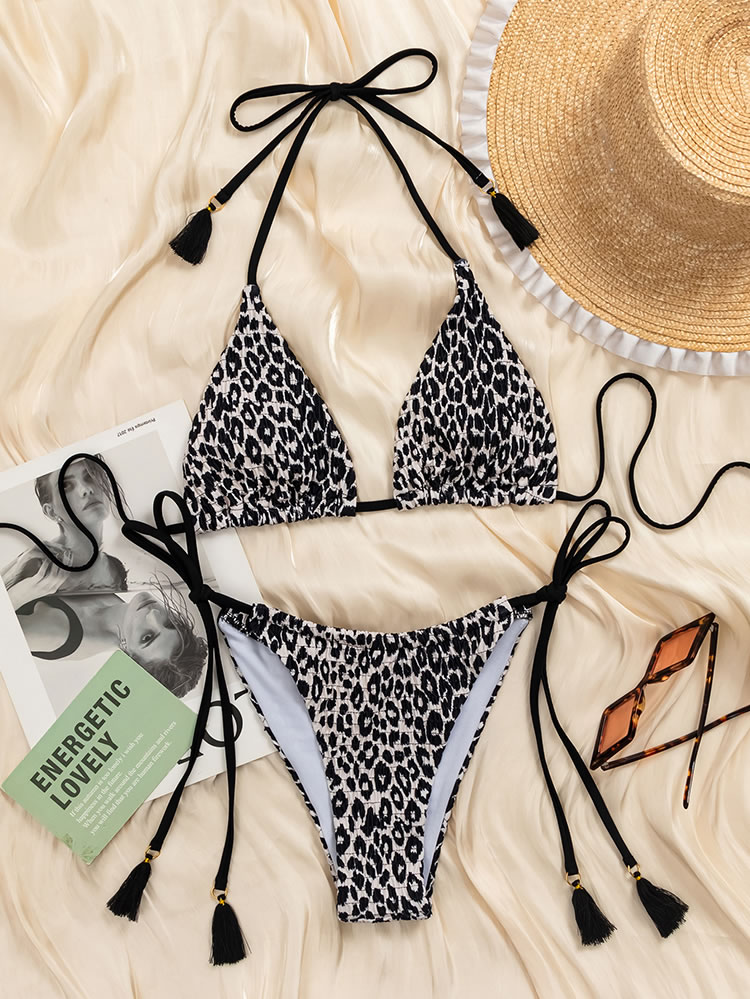 Bold Leopard Print Bikini with Set Tassel Detail