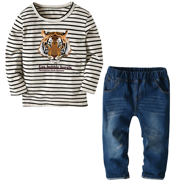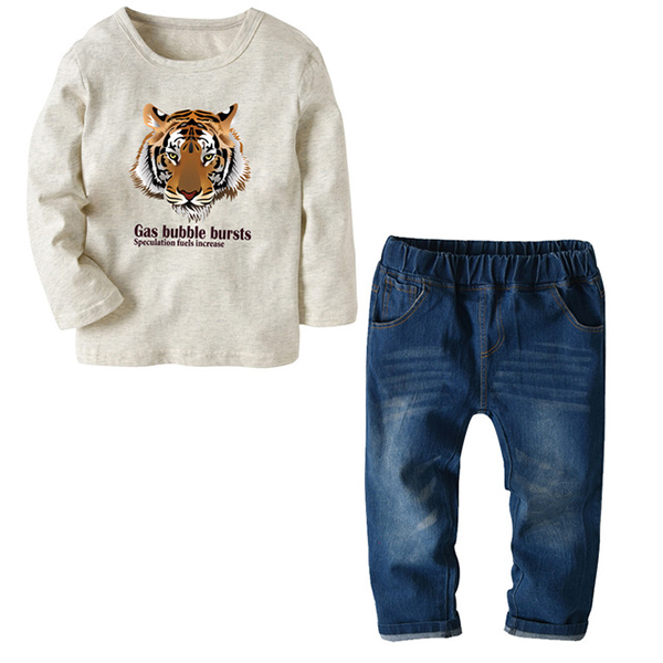 Boys 2 Piece Long Sleeve Top and Denim Pants Set