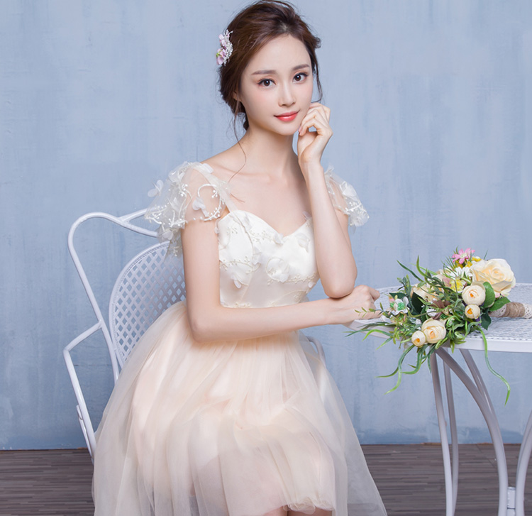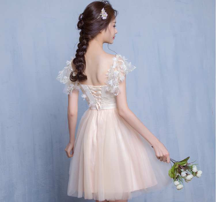 Bridesmaid Lace Short Sleeves Evening Dress