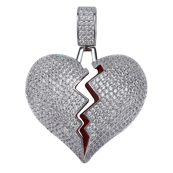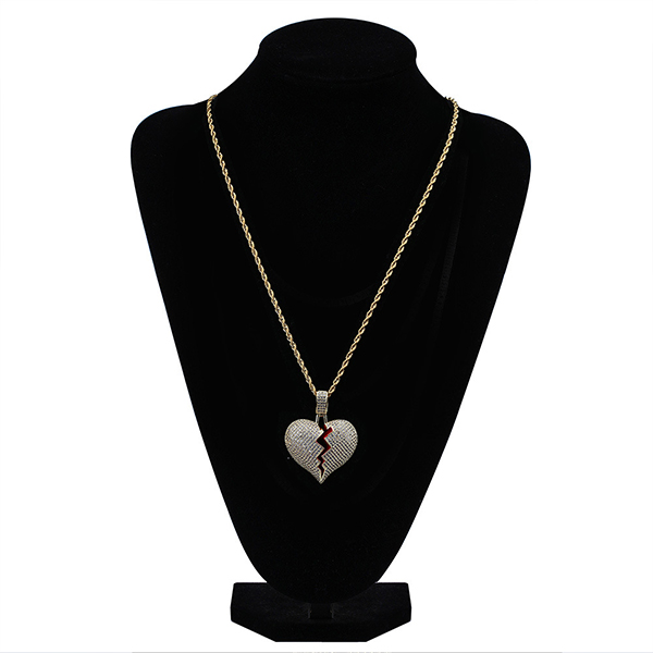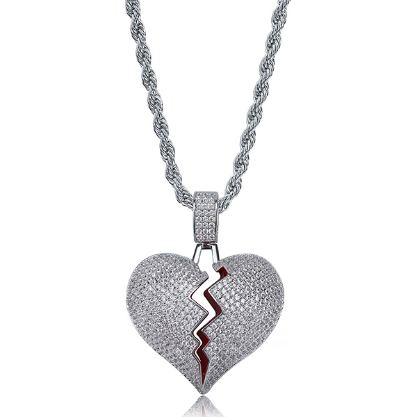 Broken Heart Chain Necklace & Pendant Iced Out Bling Zircon Hip Hop Necklaces