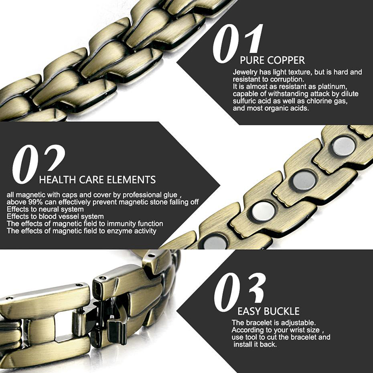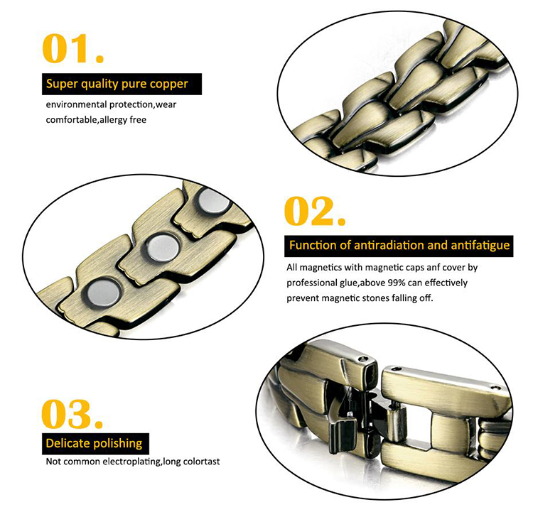 Bronze Copper Magnetic Bracelet for Pain Relief Arthritis Magnetic Therapy Jewelry