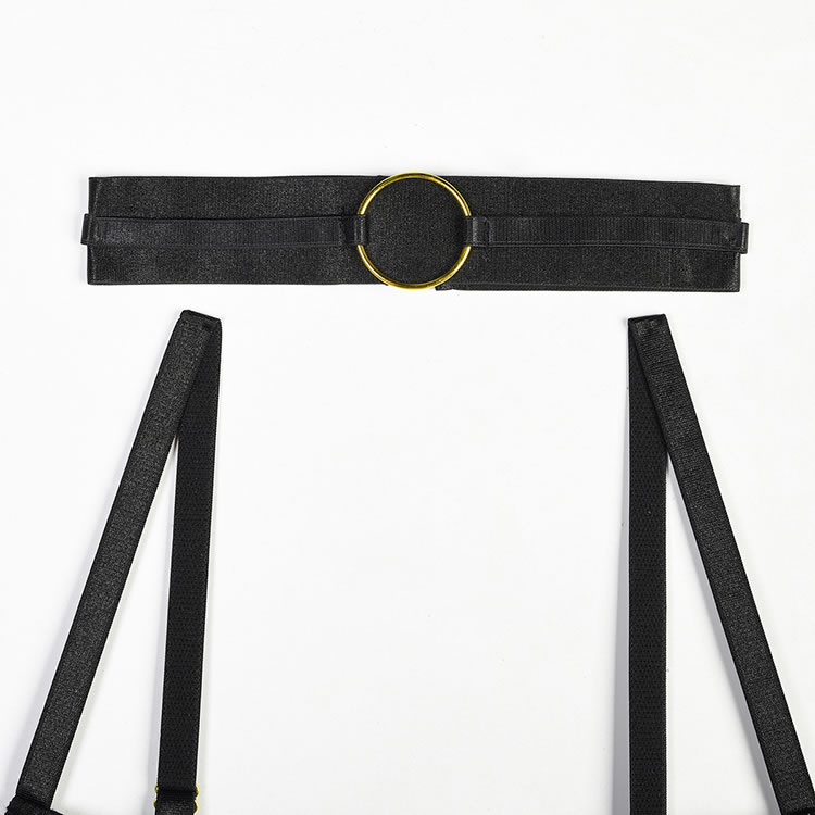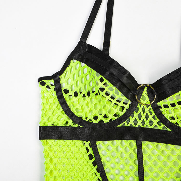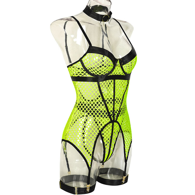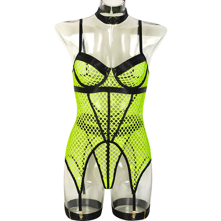 Ultra sexy yet romantic, this tempting bustier features sheer underwire cups with an O-ring details, an allover sheer honeycomb design, adjustable spaghetti straps, a hook and eye back closure, a sheer bodice, an open back panel, adjustable garter straps, adjustable leg garters, and a matching thong.
