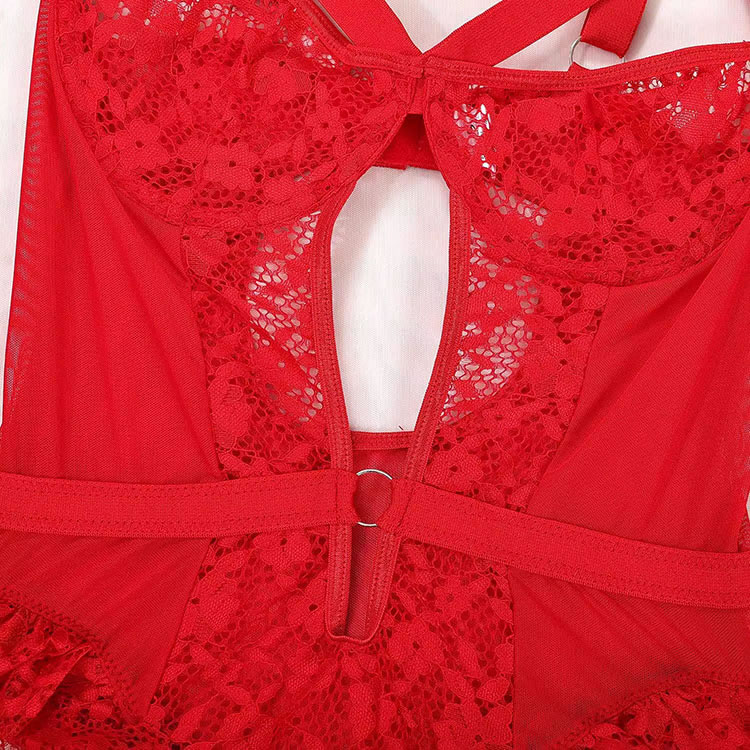 Captivating Red Lace Lingerie Set with Adjustable Straps