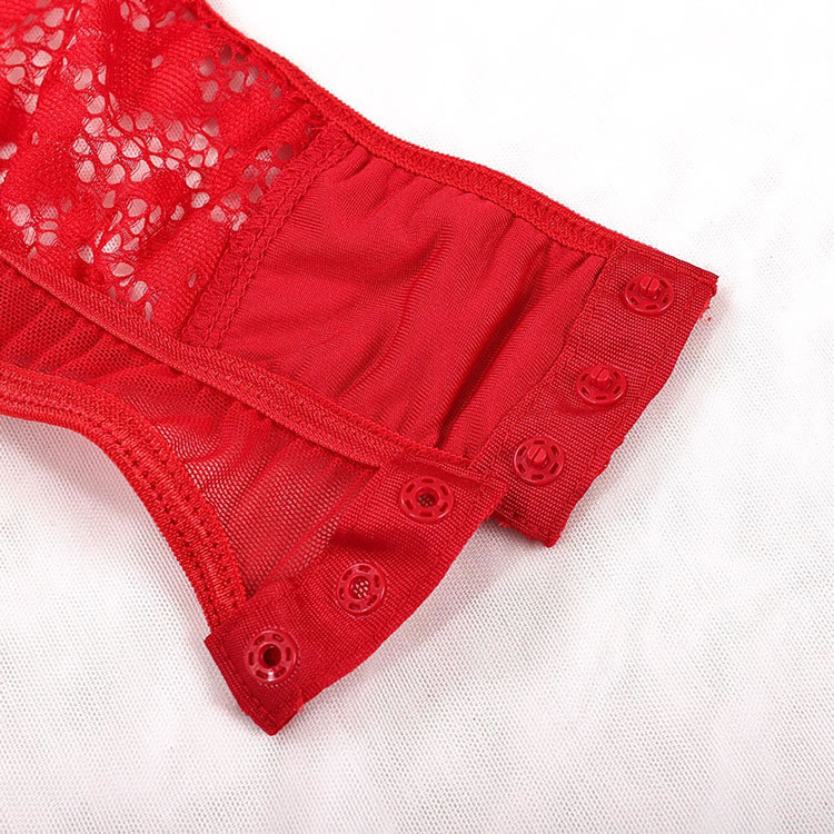 This stunning red lace bodysuit features a deep V-neckline and intricate lace detailing that accentuates your curves. The garter straps add a playful touch, making it perfect for a night of romance.