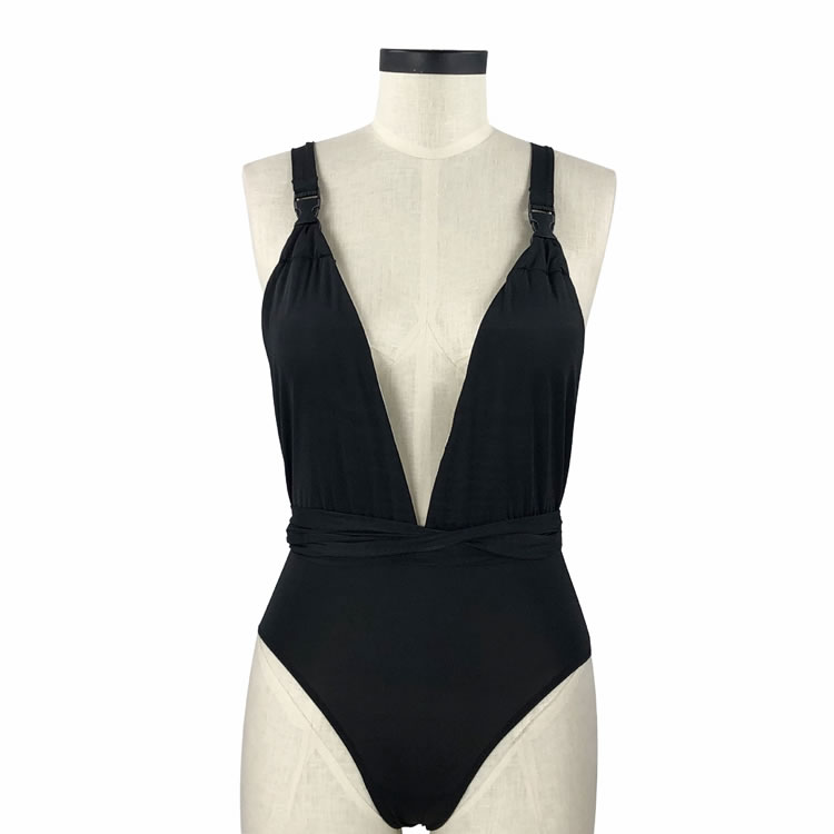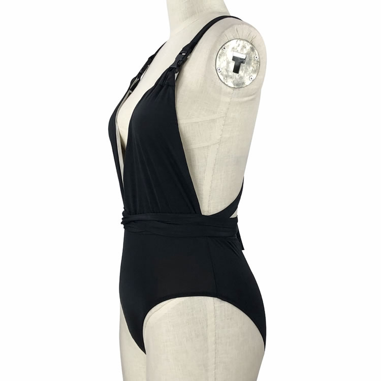 Soak in the summer heat in this alluring monokini swimsuit featuring a plunging V-neckline, thick straps with a criss-cross back, a criss-cross waist belt, and a cheeky cut back.