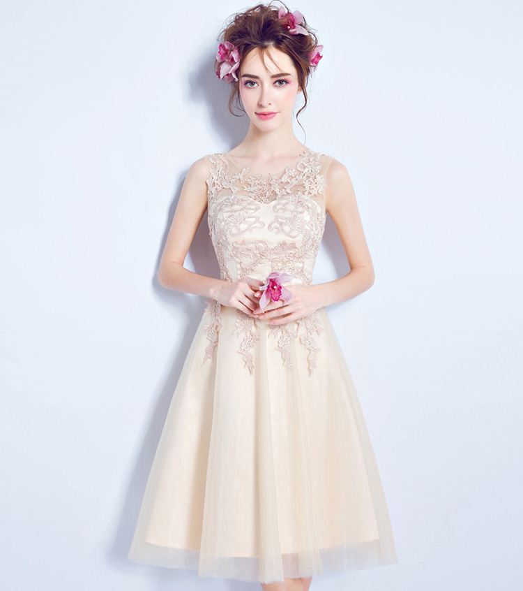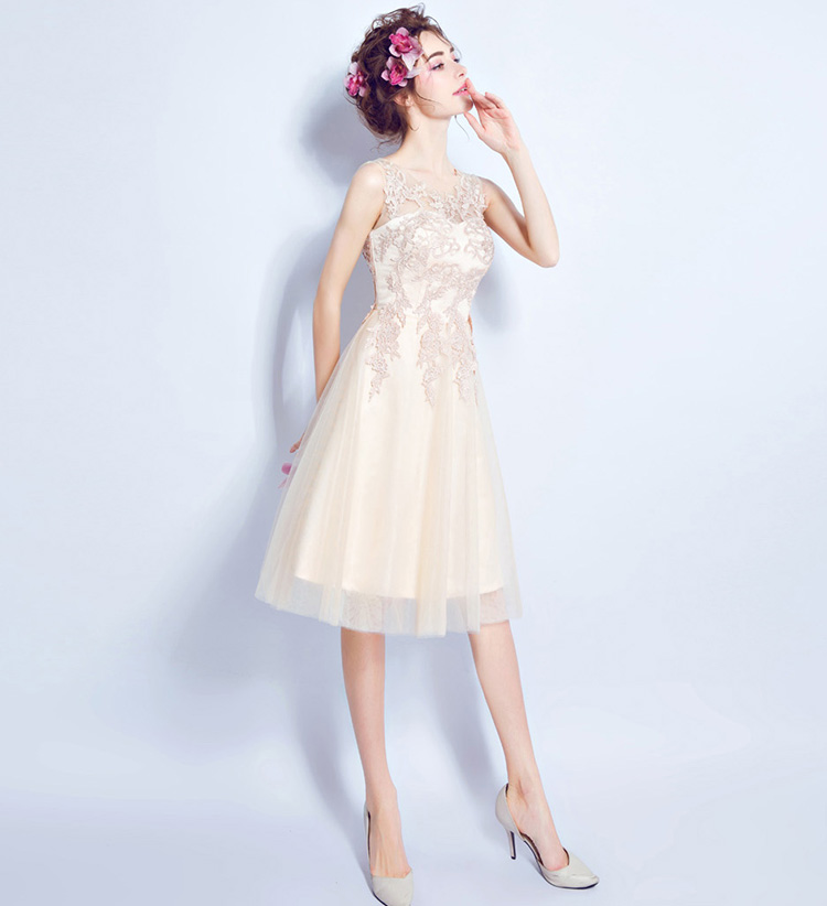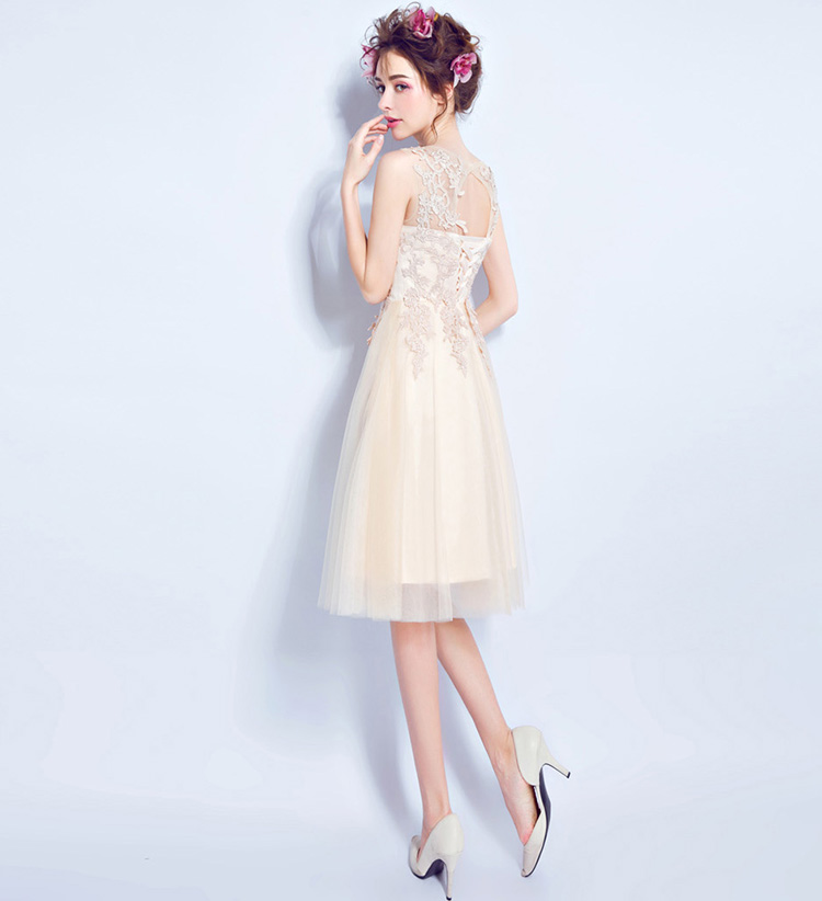 Champagne Sleeveless Appliques Lace Short Homecoming Dress