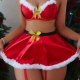 Get into the holiday spirit with this eye-catching red lingerie set that combines classic Christmas vibes with a flirty twist. The set includes a satin bra top with white fur trim and a gold bow at the center, paired with a flared mini skirt featuring a soft white faux fur hem and a black waistband. Matching garter straps with gold bows complete the look. Designed for festive occasions like Christmas parties, costume events, or date nights, it’s easy to wear and stays in place with adjustable straps and secure clips.