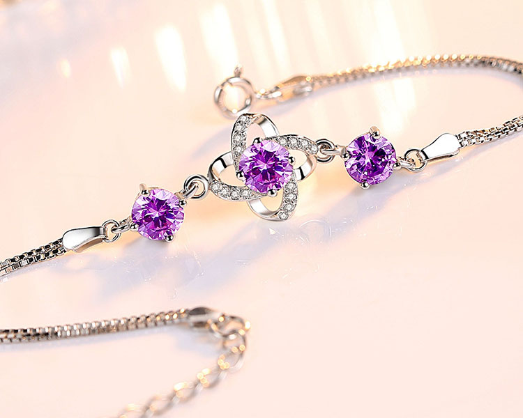 Clover Pure Silver Crystal Bracelet Sweet Simple Chain