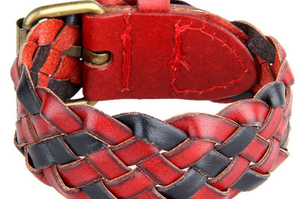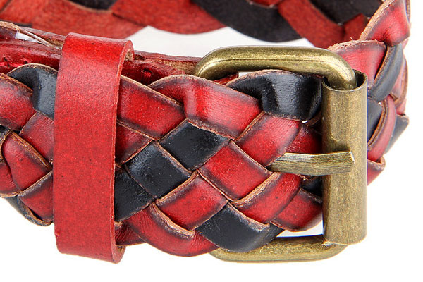 Contrast Braid Adjustable PU Leather Bracelet