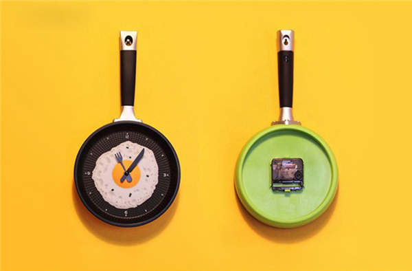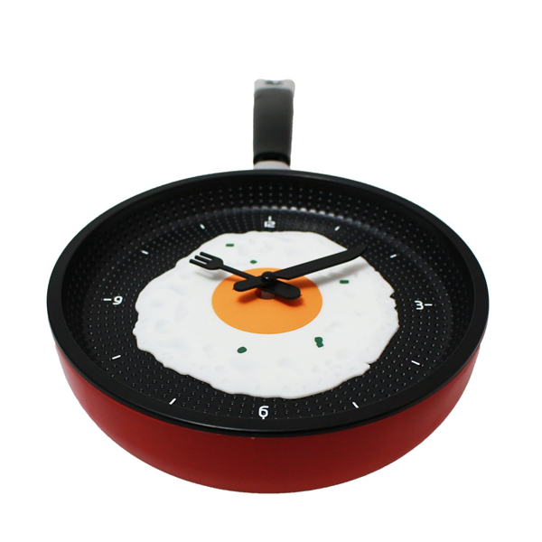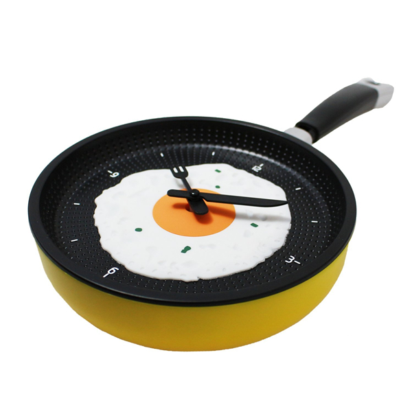 Frying Pan With Fried Egg Shaped Wall Clock For Kitchen Decor