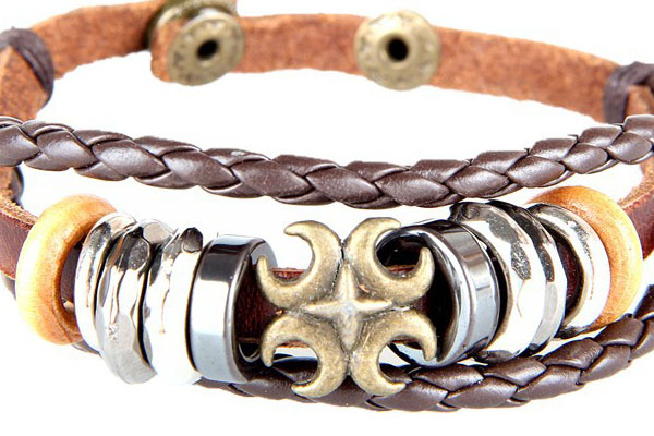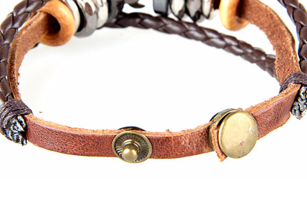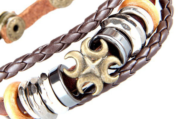 Crescent Moon Pattern Snap Button PU Leather Bracelet With Braided Rope