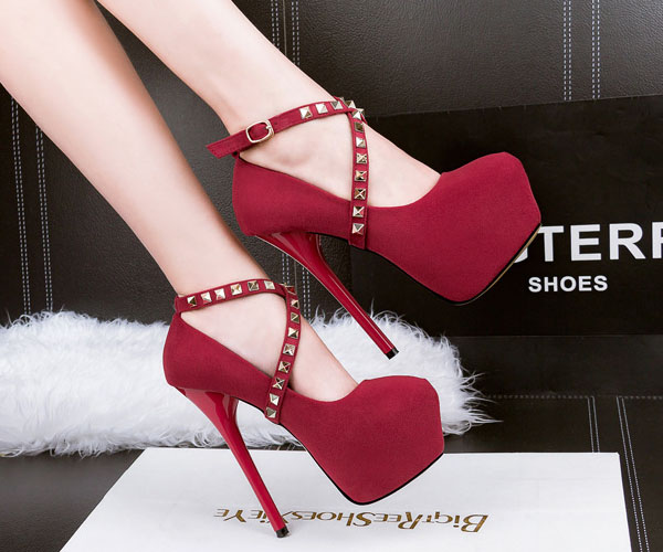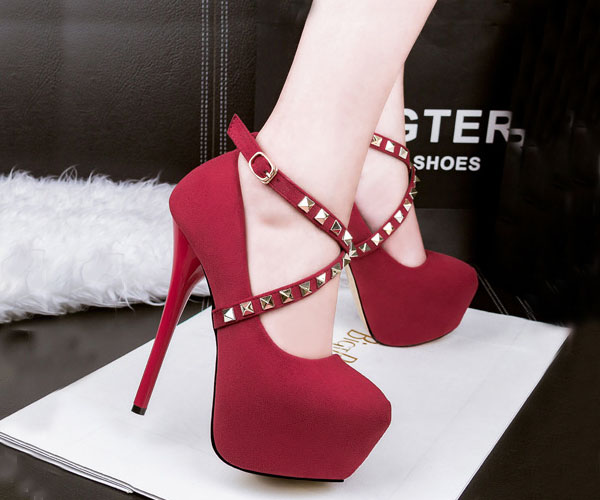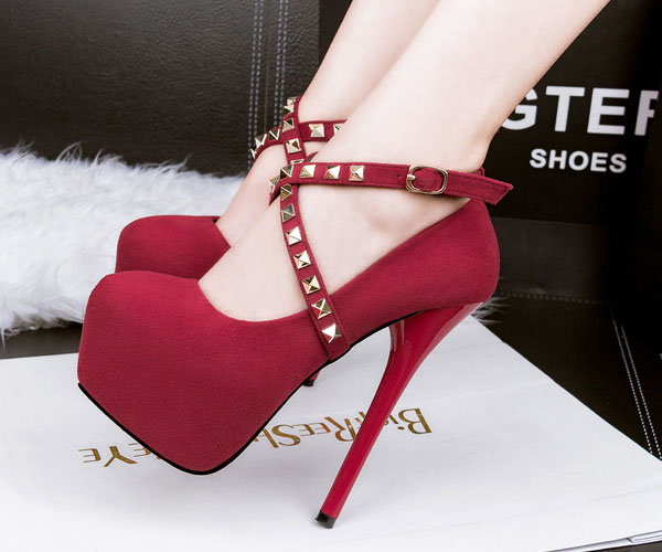 Cross Rivet Shallow Mouth High-Heeled Shoes