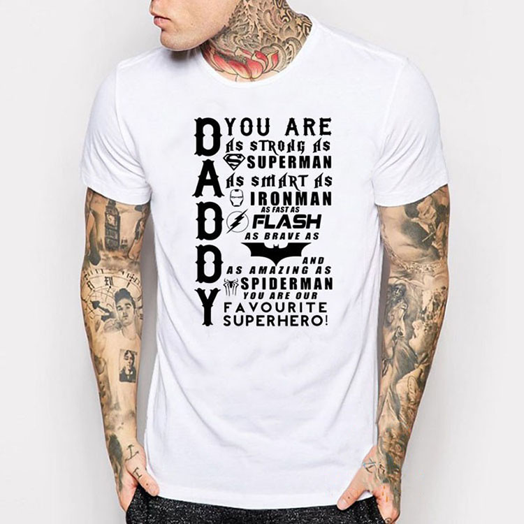 Fathers Day Daddy You Are As Strong As Superhero Round Collar T-Shirt