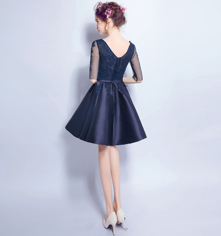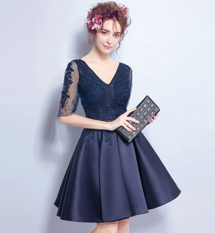 Dark Blue Sexy Lace Perspective Short Design Homecoming Dress