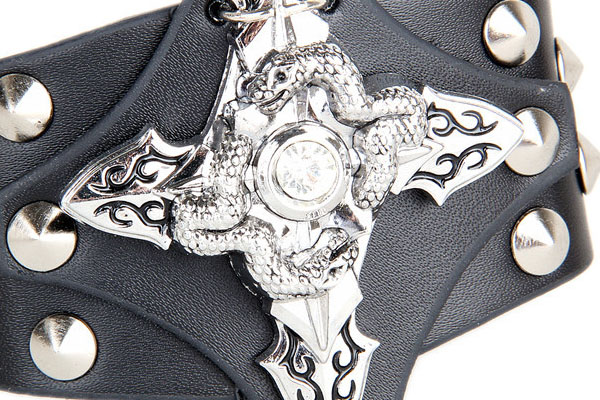 Delicate Metal Cross With Dual Snakes Pattern PU Leather Bracelet