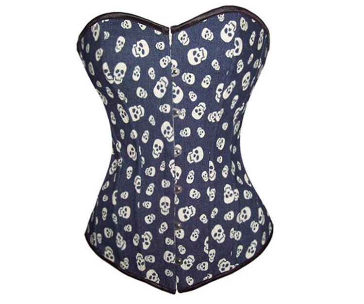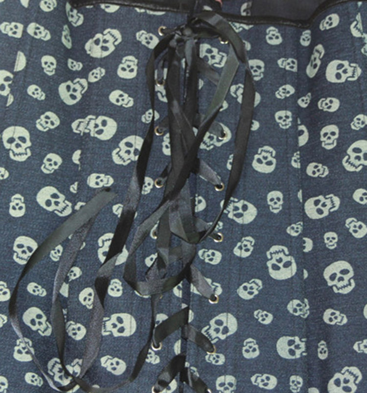 Denim Skull Pattern Steel Hook Corset