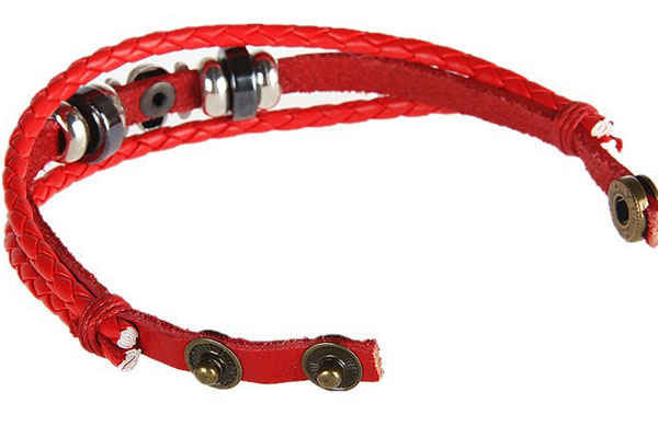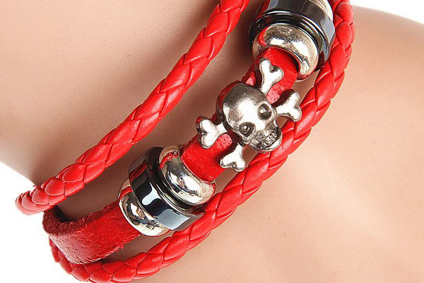 Devil Skull Pattern PU Leather Bracelet With Braided Rope