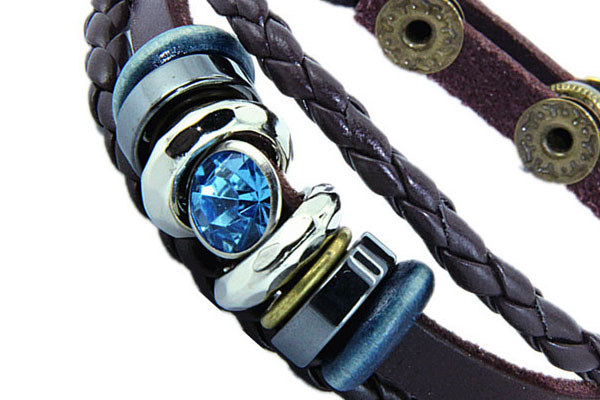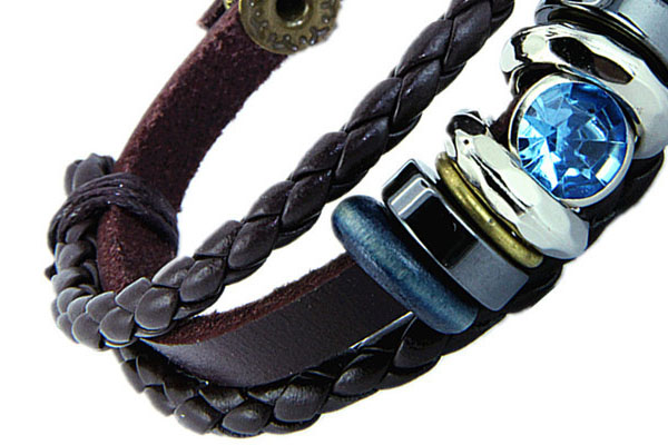 Diamond Pattern PU Leather Bracelet With Braided Rope