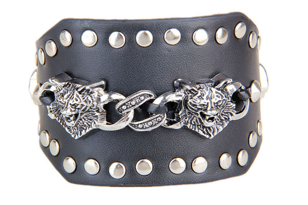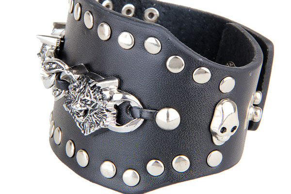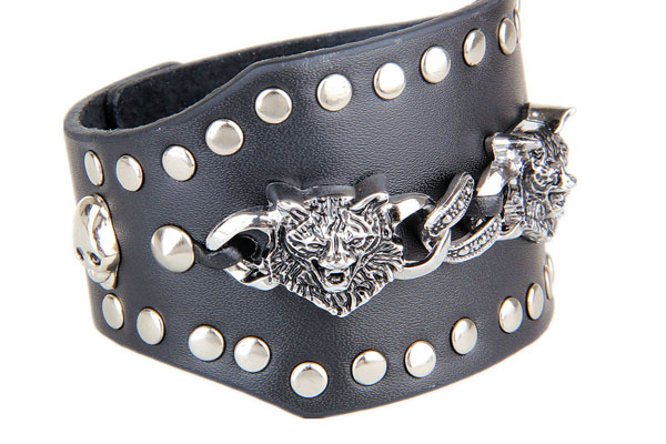 Dual Alloy Wolves & Round Rivets PU Leather Bracelet