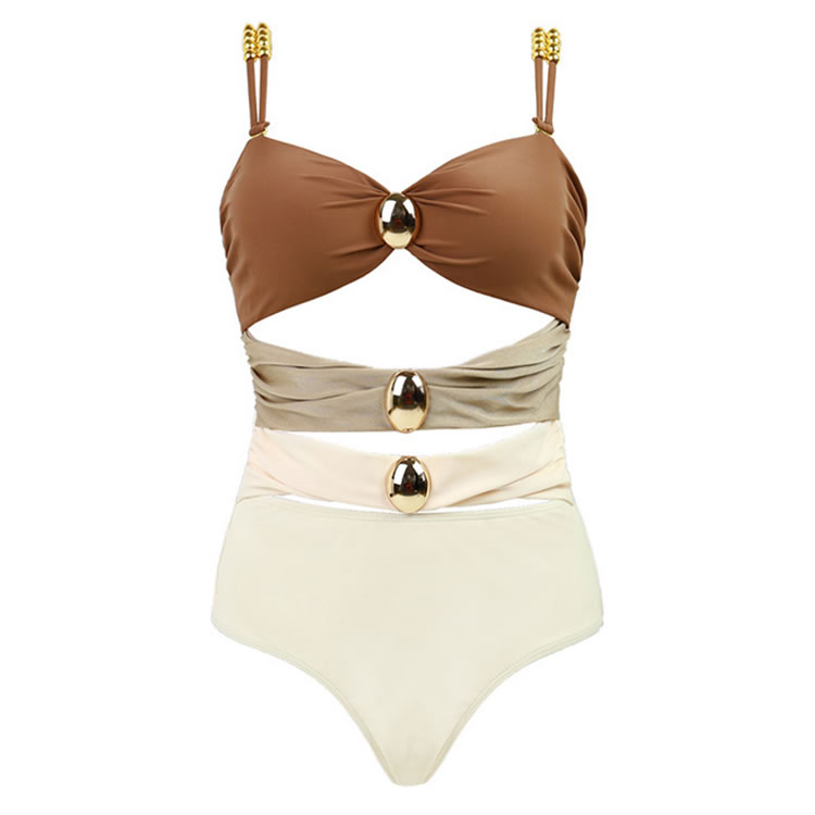 Elegant Beige and Cream Swimsuit with Gold Accents