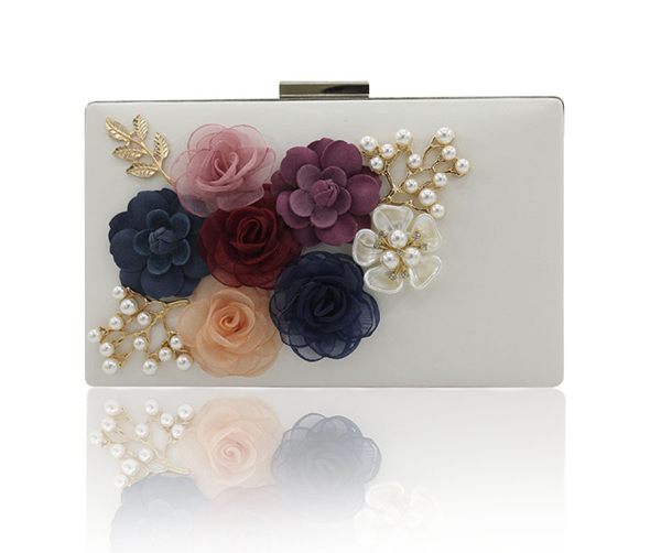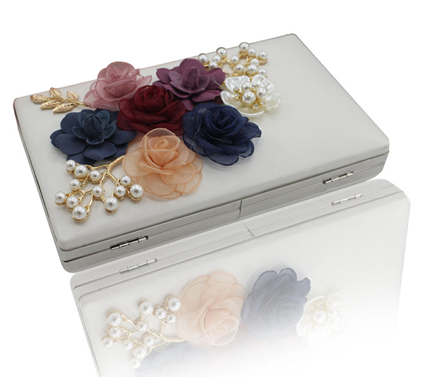 Elegant Floral Pearls Evening Chain Bag Clutch