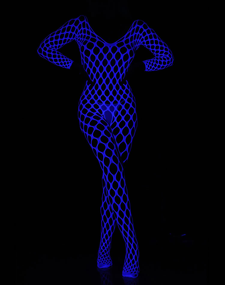 This stunning lingerie set is designed to captivate with its unique and alluring design. The bodysuit features a form-fitting silhouette that accentuates your curves, with a deep V-neckline that adds a touch of elegance. The intricate fishnet pattern enhances the visual appeal, providing a blend of transparency and sophistication. The long sleeves design ensure a flattering fit, making it perfect for special occasions or intimate moments.