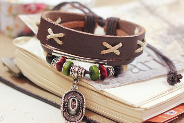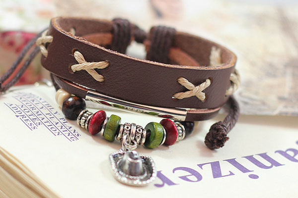 Ethnic Cowboy Hat Charm Adjustable Leather Bracelet